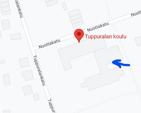 Pysäköinti koulun pihassa, koulun eteläpuolella Eläinklinikka Kurjen pihassa tai Nuottakadun varressa. Huomioikaa, että pysäköinti on sallittu vain kadun koulunpuoleisessa reunassa.